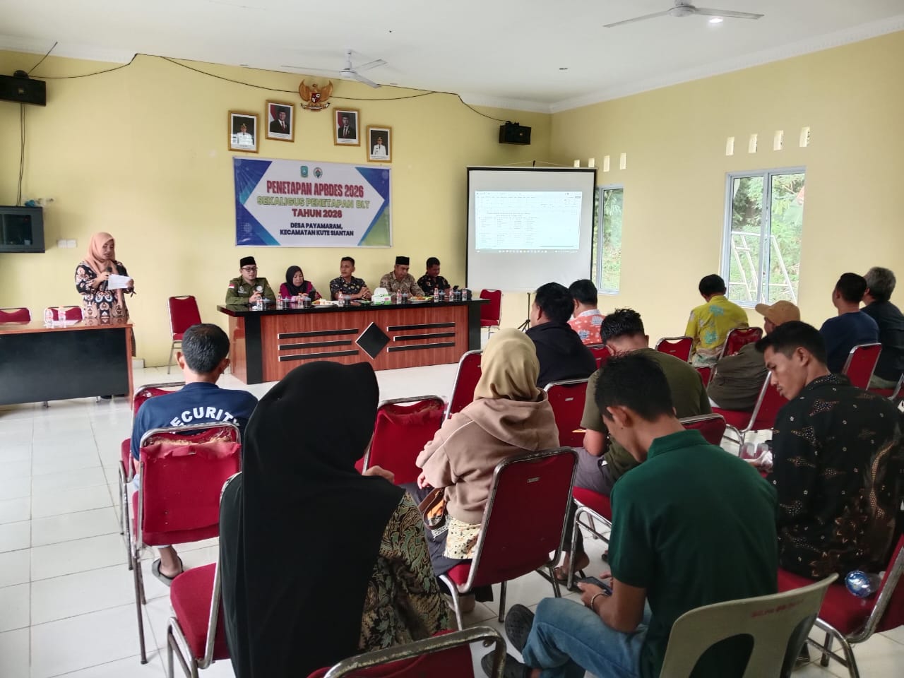 Dalam musyawarah tersebut, APBDes Tahun Anggaran 2026 ditetapkan sebagai pedoman pelaksanaan pembangunan, penyelenggaraan pemerintahan desa, pembinaan kemasyarakatan, dan pemberdayaan masyarakat desa selama tahun 2026. Selain itu, ditetapkan pula alokasi anggaran BLT Desa yang bersumber dari Dana Desa sebagai bentuk perhatian pemerintah desa terhadap masyarakat kurang mampu dan terdampak kondisi ekonomi.